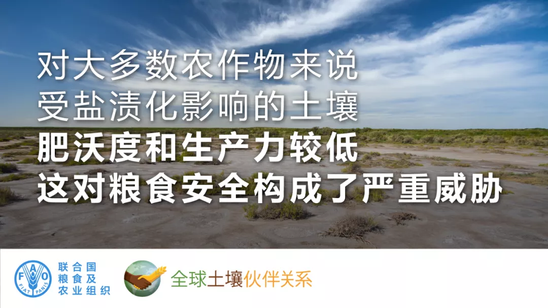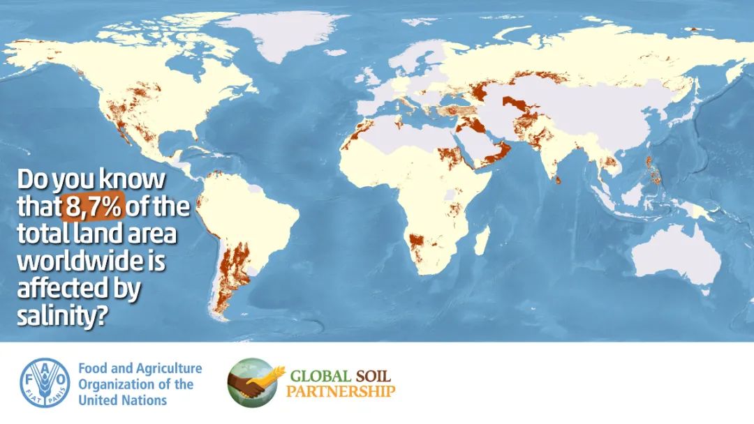 聯(lián)合國糧農(nóng)組織舉行“世界土壤日”紀念活動。©糧農(nóng)組織-農(nóng)作方法不可持續(xù),過度開發(fā)自然資源,人口不斷增長,這一切讓土壤承受的壓力越來越大,并造成土壤在全球范圍內(nèi)以驚人的速度退化。-糧農(nóng)組織10月發(fā)布的全球鹽堿土壤分布圖顯示,全球超過8.33億公頃的土壤已經(jīng)受到鹽堿化的影響。 -根據(jù)測算,超過10%的農(nóng)田出現(xiàn)鹽堿化,對全球糧食安全構成重大威脅。-中亞、中東、南美、北非和太平洋區(qū)域是重災區(qū)。管理鹽堿化土壤需要綜合施策,采用可持續(xù)的土壤、灌溉和排水管理方式,選擇耐鹽作物和植物,包括能夠在鹽堿環(huán)境中良好生長的鹽生植物。
